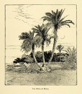 This is an original 1890 black and white wood engraving of The Wells of Moses. It is speculated that this very spot was where the burning bush was located. It is also said that the well never dries up, gives marital happiness to those who drink from it and is St. Catharine's Monastery's primary source for water.