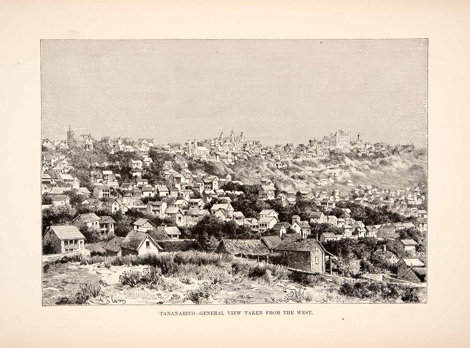 1890 Wood Engraving (Photoxylograph) Cityscape Antananarivo Africa XGIC9