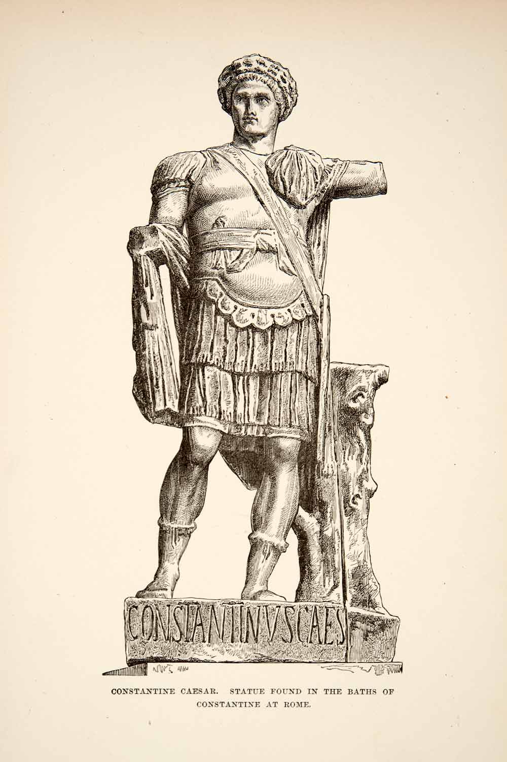 1890 Wood Engraving (Photoxylograph) Sculpture Roman Emperor Constantine XHB3