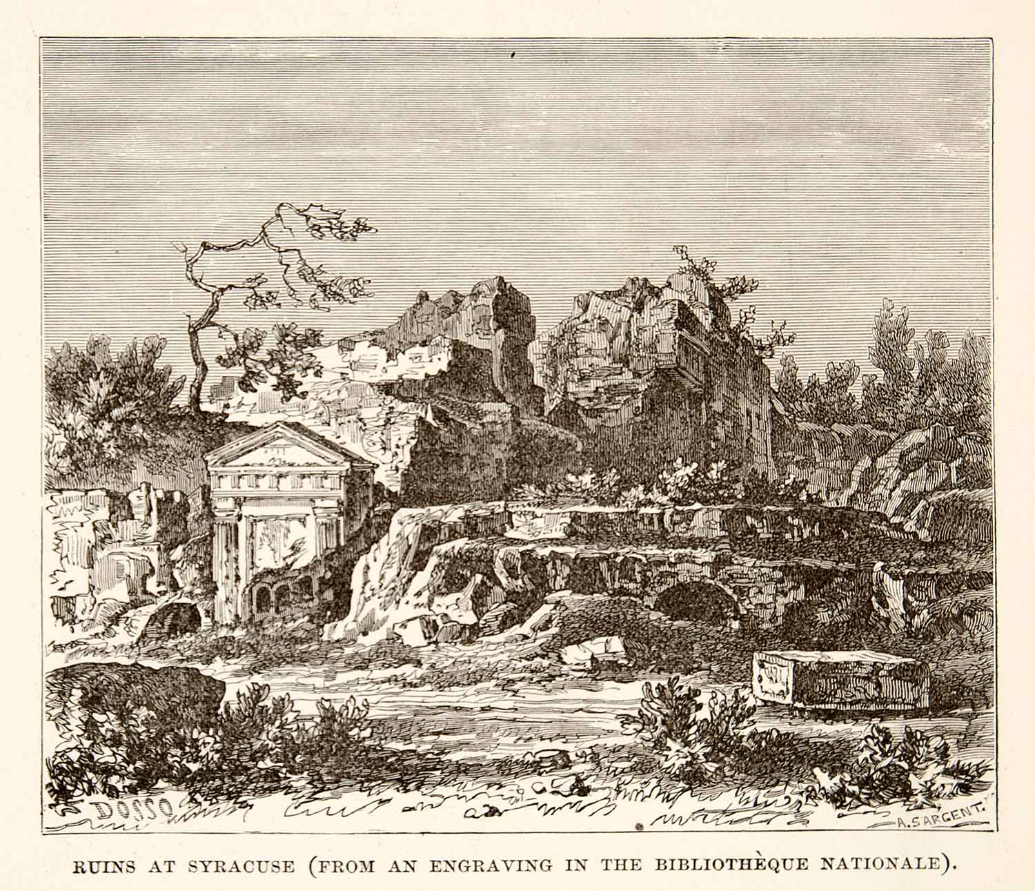 1890 Wood Engraving (Photoxylograph) Syracuse Italy Ancient Ruins XHB2