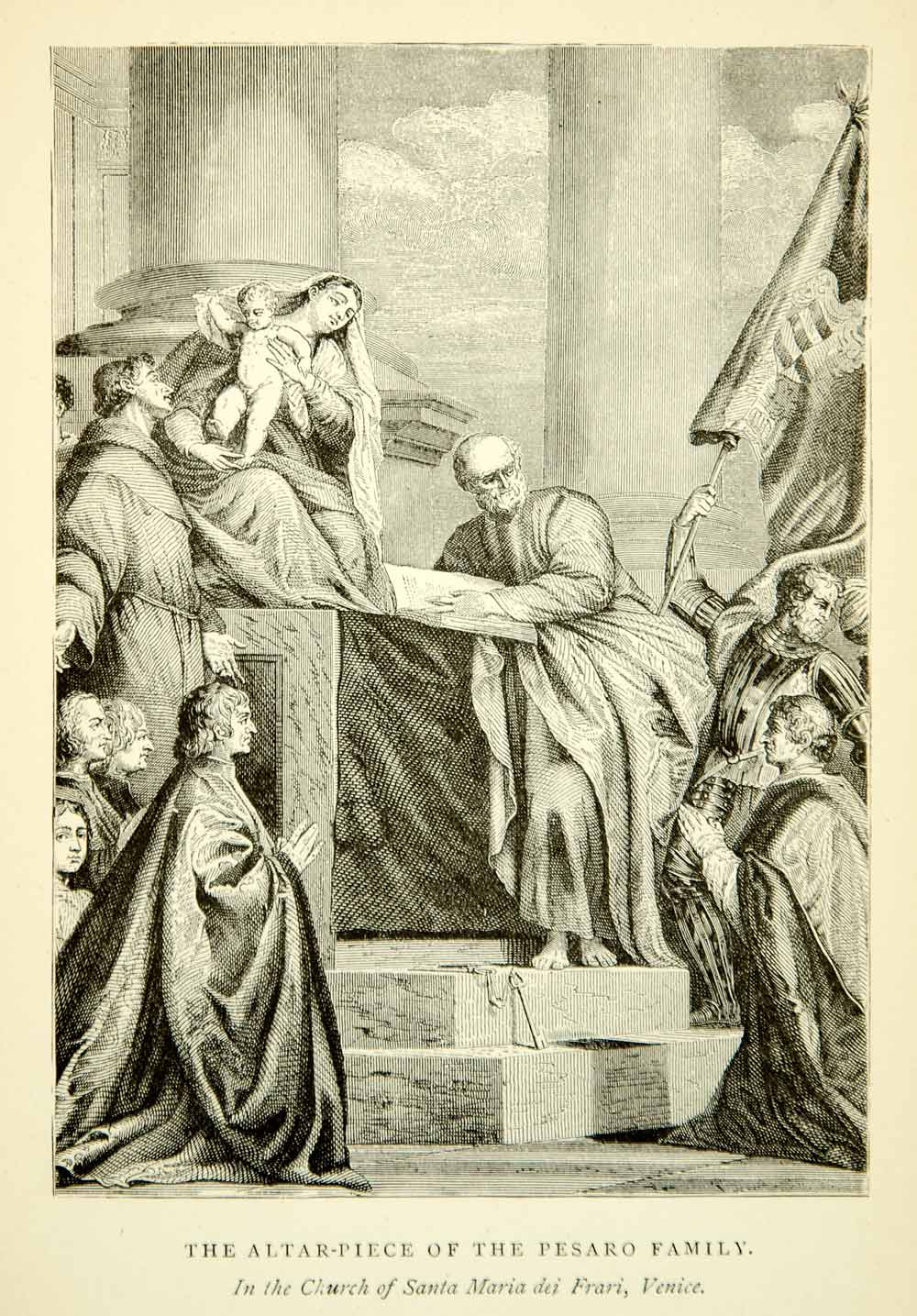 1890 Wood Engraving Titian Art Pesaro Madonna Italian Renaissance XAQA6