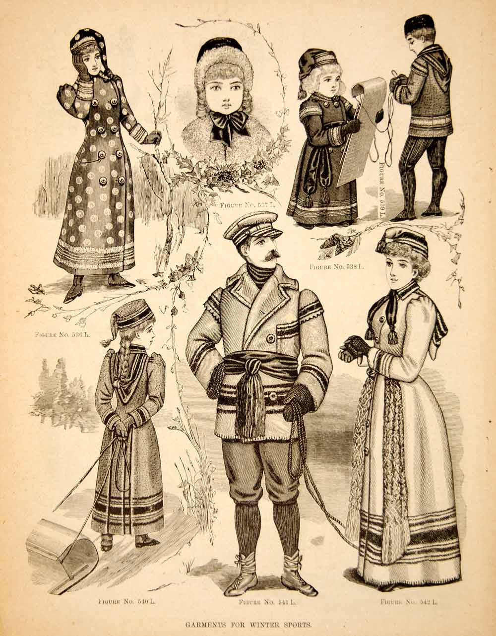 Keywords specific to this image: Historic, Coat, Cloak, Jacket, Sled, Snow, Portraits, Hats, Mittens
