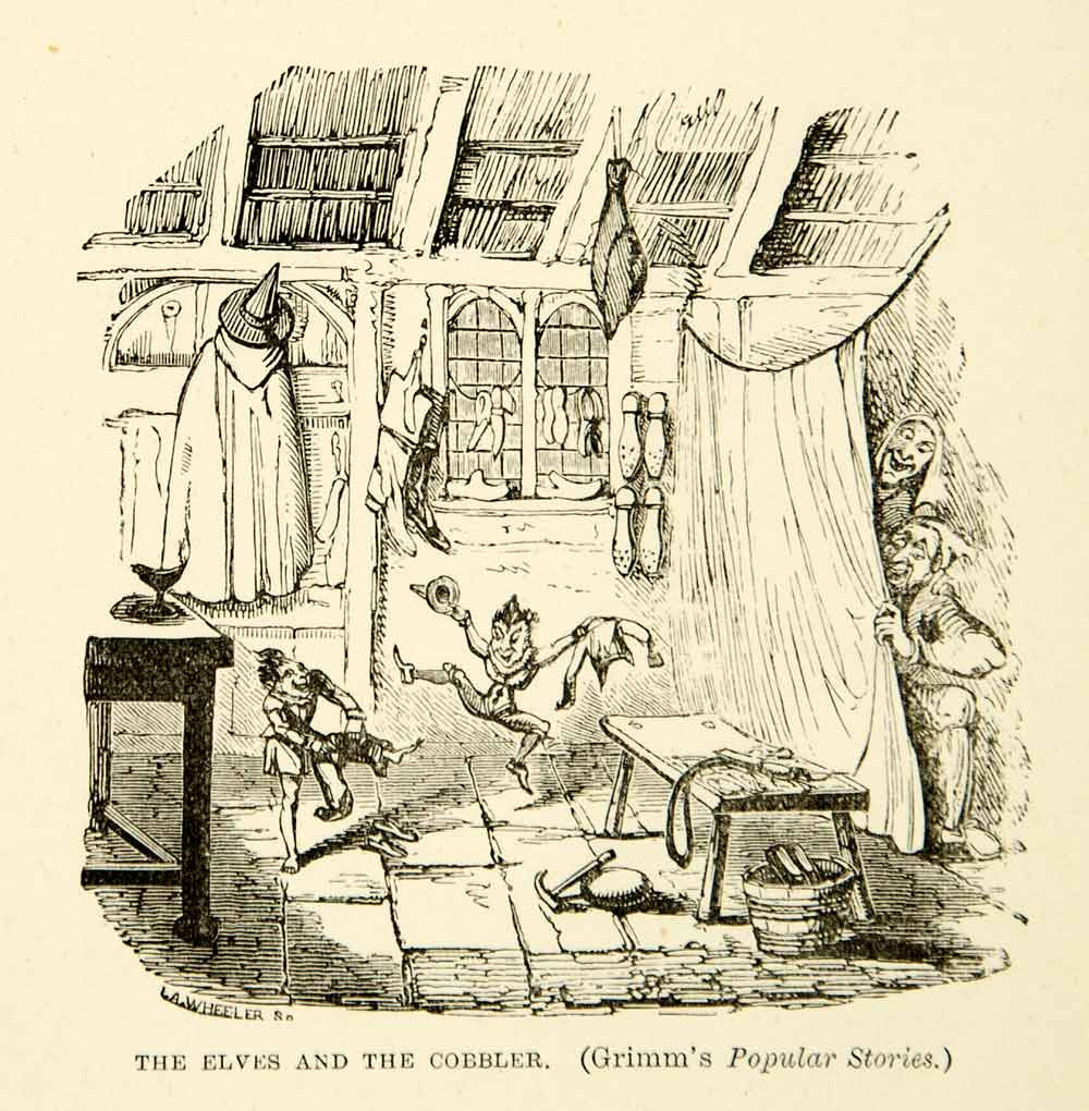1891 Print Elves Cobbler George Cruikshank Illustration Shoemaker Night XAGA5