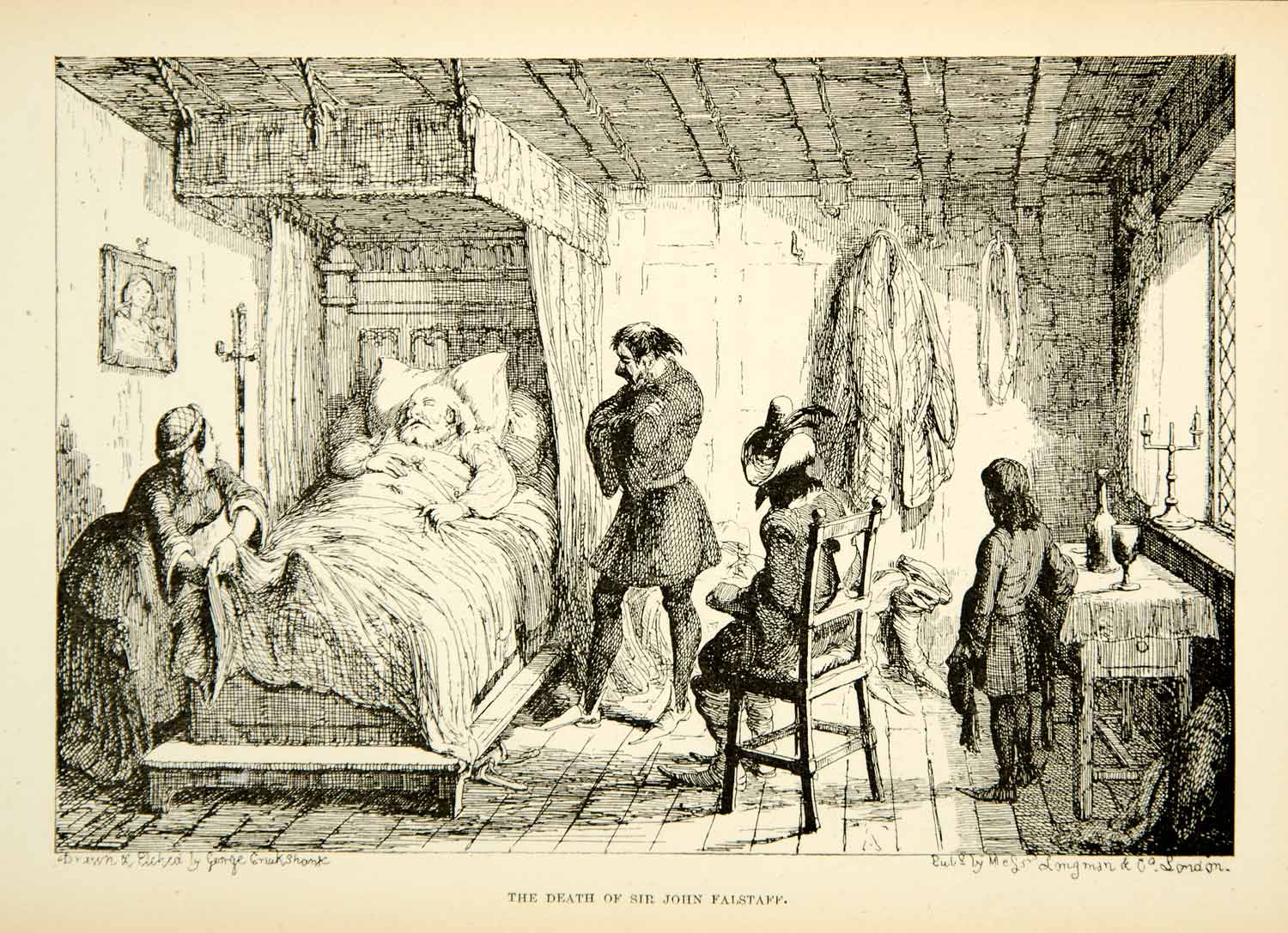 1891 Print George Cruikshank John Falstaff Death Room Bed Depressing XAGA5