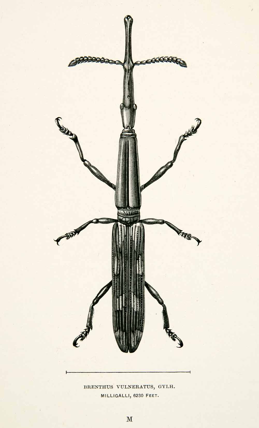 1891 Wood Engraving Gylh Whymper Entomology Brenthus Vulneratus Andes XGZA1