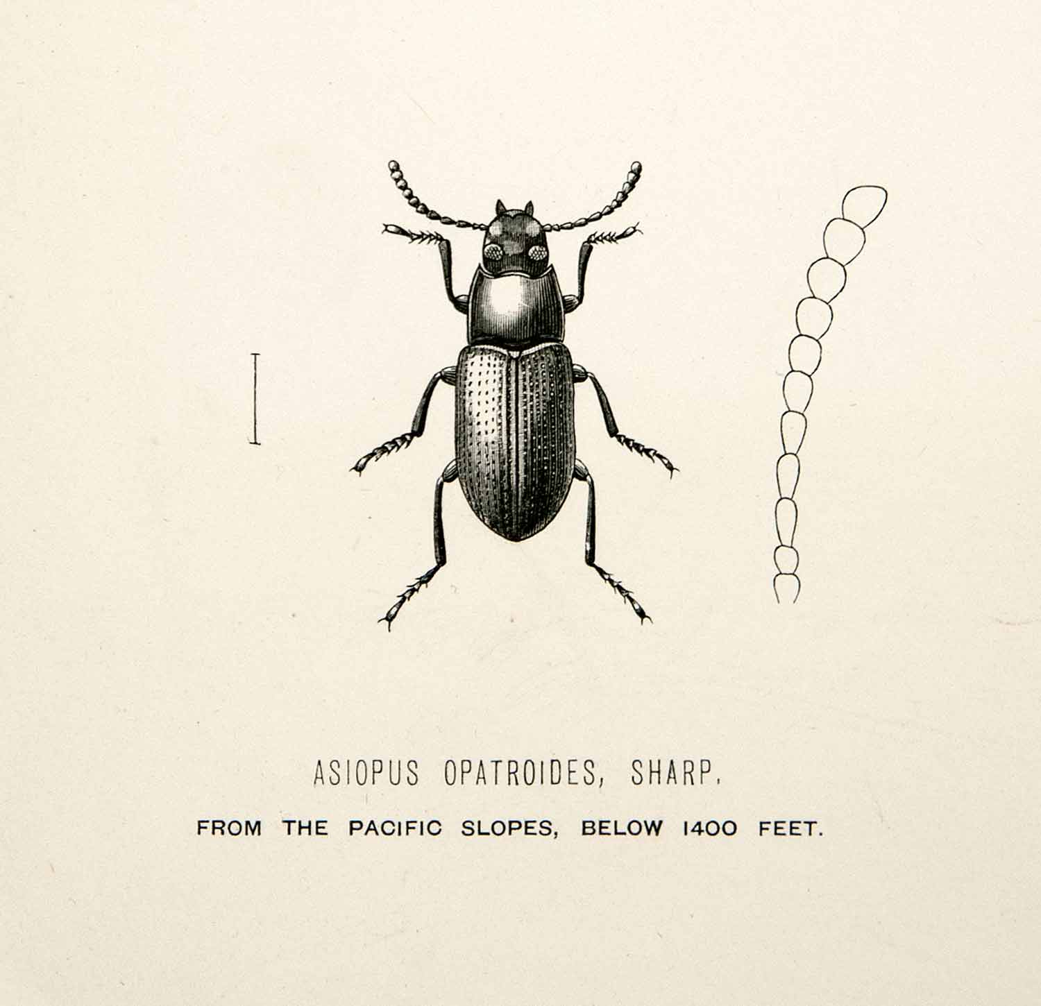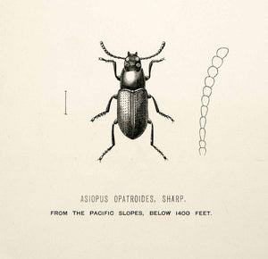 1891 Wood Engraving Sharp Whymper Entomology Asiopus Opatroides Antenna XGZA1