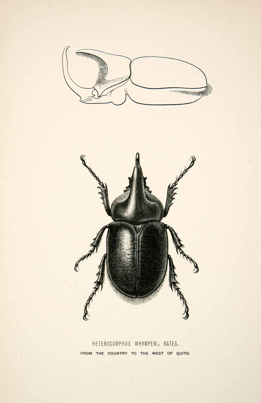 1891 Wood Engraving Whymper Bates Heterocomphus Whymperi Beetle Andes XGZA1
