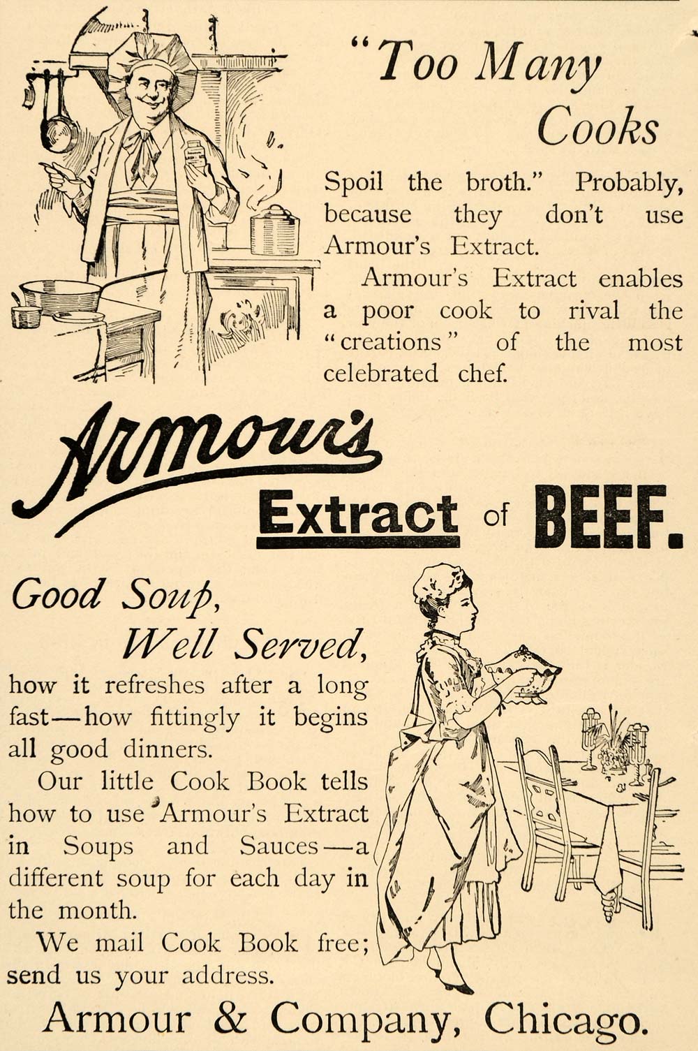 1892 Ad Armour Beef Extract Soup Cooks Chef Hat Maid - ORIGINAL ADVERTISING LHJ4