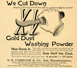 1892 Ad Gold Dust Washing Powder N. K. Fairbank Soap Cleaner Household cut LHJ4