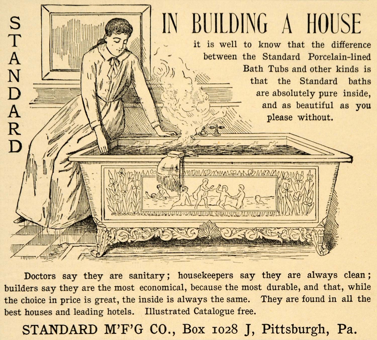 Keywords specific to this image: Doctors, Housekeepers, Maid, Housewife, Home Decor, Plumbing, Bathing, Pittsburgh Antique Advertising