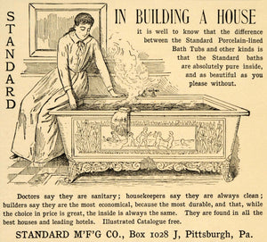 This is an original 1892 black and white print ad for the Standard Manufacturing Company's Porcelain;lined Bath Tubs.