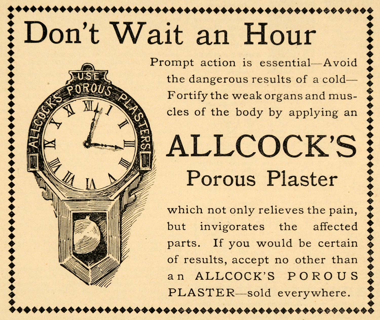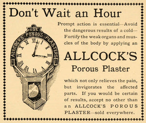 This is an original 1893 black and white print ad for the Allcock's Porous Plaster.