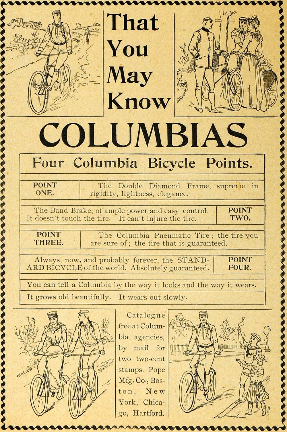 1893 Ad Antique Pope Columbia Bicycles Bikes Cycling Biking Boston MAY1