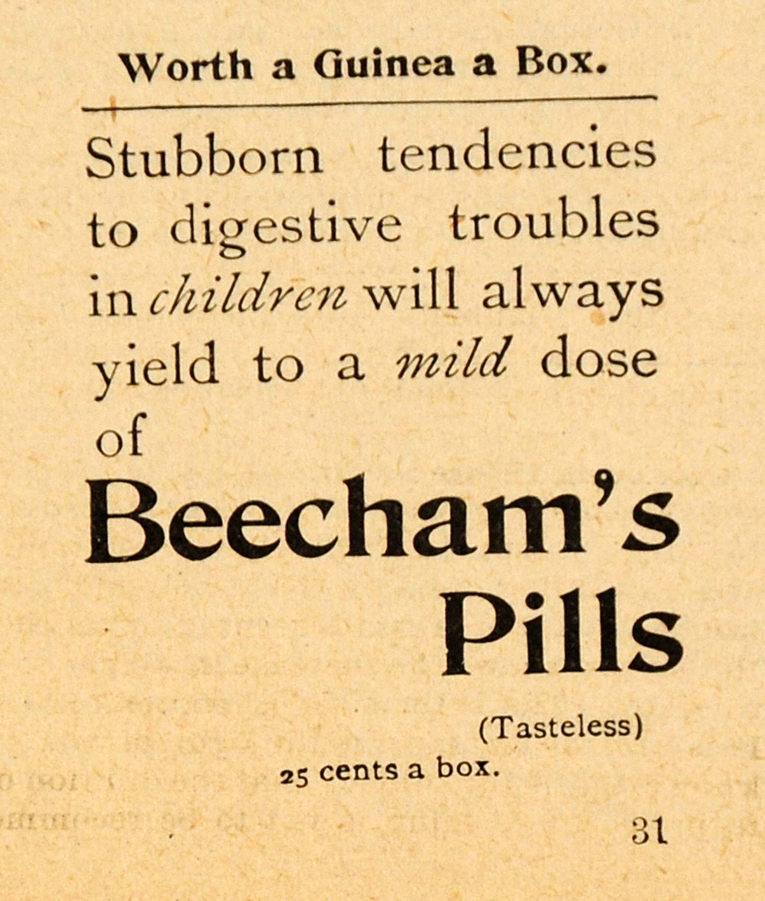 This is a small original 1893 black and white print ad for Beecham's Pills, an ideal digestive aid for children.