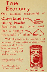 This is an original 1893 color print ad for the Cleveland's Baking Powder from Cleveland Baking Powder Company located at 81 Fulton Street, New York.