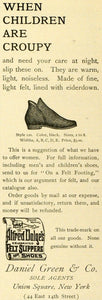 This is a small original 1893 black and white print ad for the Alfred Dolges' Felt Slippers and Shoes from Daniel Green and Company located in Union Square, New York City.