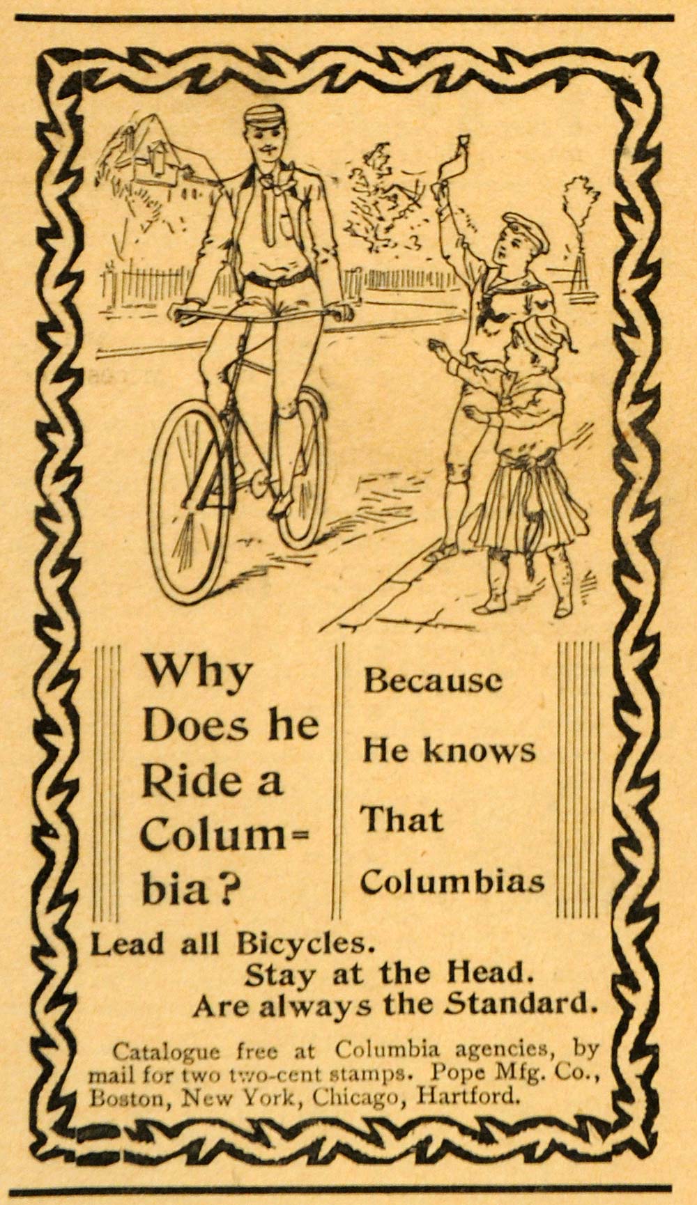 1893 Ad Pope Columbia Bicycles Biking Bikes Cycling Alternative AAG1