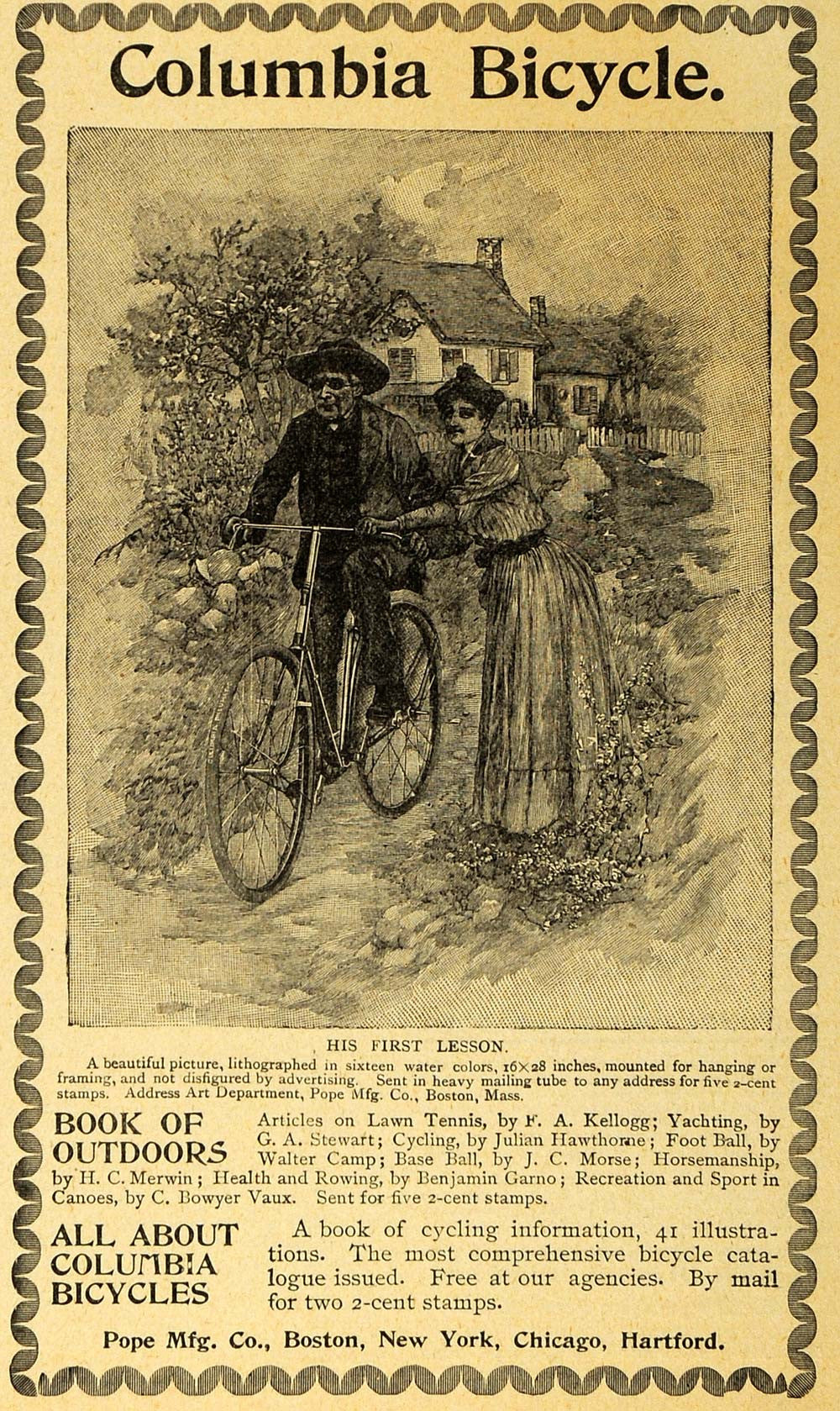 The Columbia Cycle Company was the first transportation company to utilize the Art Nouveau style in its advertising. Upon its great success, other transportation companies quickly followed suit.