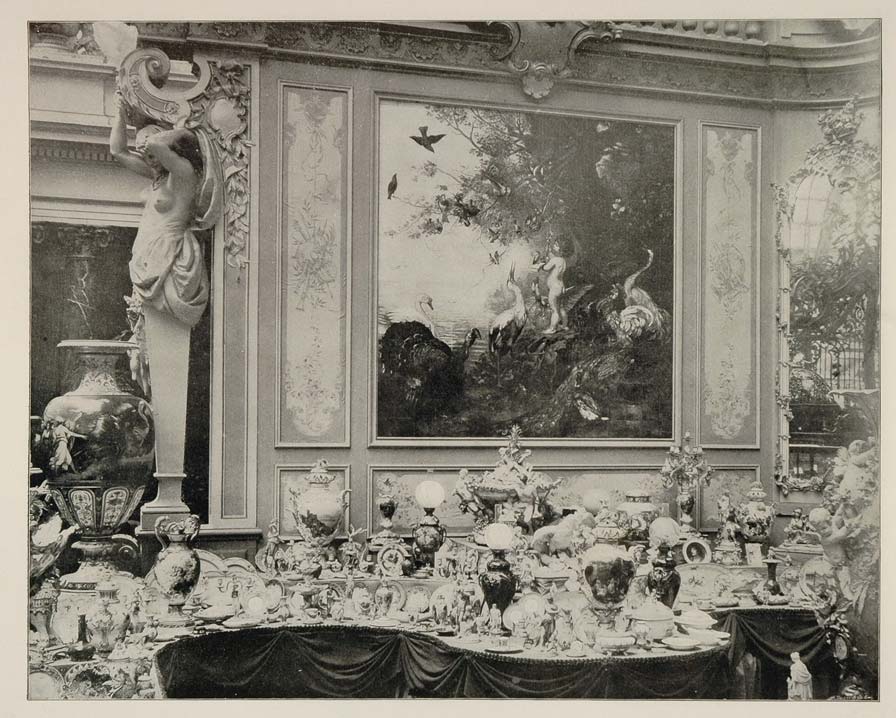 This is an original 1894 halftone print of the German Porcelain Porch Exhibit at the 1893 Chicago World's Fair. (Please note that, typical of halftone prints, there is printing on the reverse.)