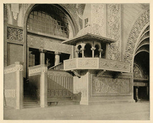 This is an original 1893 halftone print of the details of the Golden Doorway of the Transportation Building at the 1893 Chicago Worlds Fair. (Please note that, typical of halftone prints, there is printing on the reverse.)