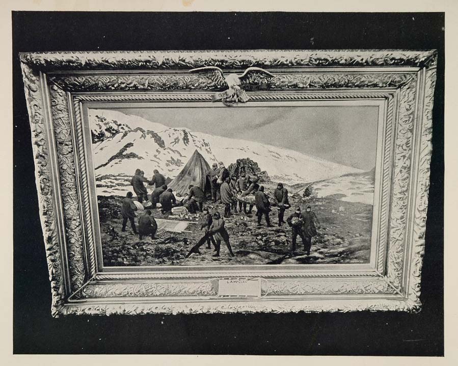 This is an original 1894 halftone print of a painting exhibited at the 1893 Chicago World's Fair which illustrated the rescue of the survivors of the ill-fated Greely Expedition to North Greenland. (Please note that, typical of halftone prints, there is printing on the reverse.)