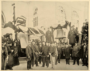 This is an original 1894 halftone print of the meeting of the Liberty Bell and the Troy Bell after the 1893 Chicago World's Fair. (Please note that, typical of halftone prints, there is printing on the reverse of the print.)