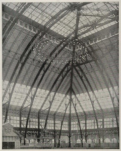 This is an original 1893 halftone print of the electric lights that illuminated the thirty-one acres of the Manufactures Building at the 1893 Chicago World's Fair. (Please note that, typical of halftone prints, there is printing on the reverse.)