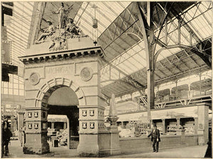 This is an original 1894 halftone print of Michigan's Pavilion in the Mines Building at the 1893 Chicago World's Fair. (Please note that, typical of halftone prints, there is printing on the reverse of the print.)