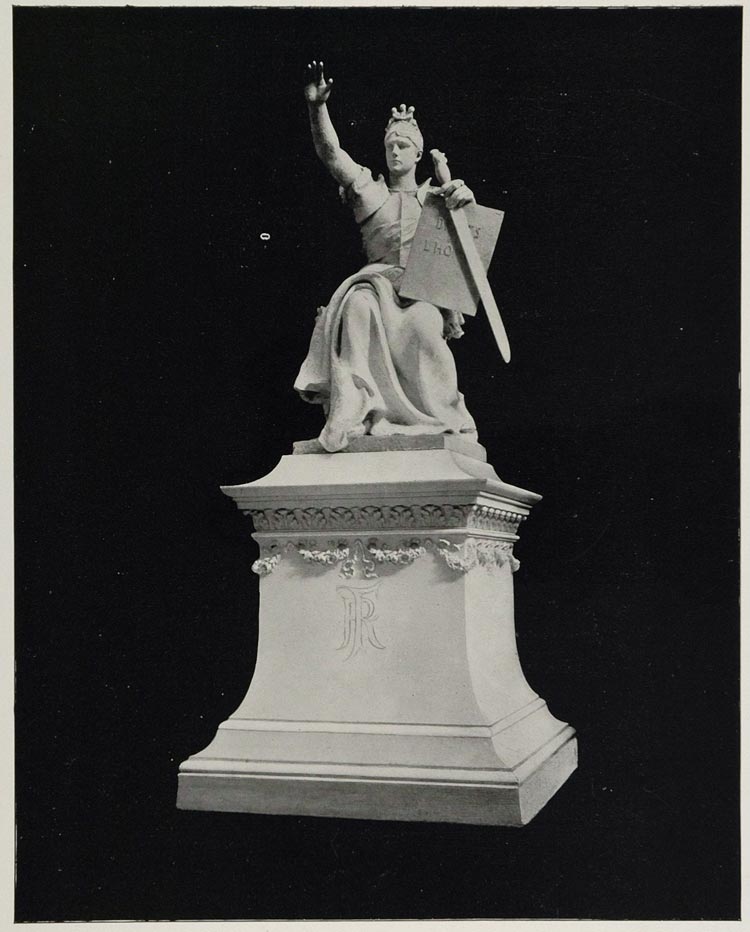 This is an original 1893 halftone print of the statue of the French Republic which stood at the entrance to the French facade at the 1893 Chicago World's Fair. (Please note that, typical of halftone prints, there is printing on the reverse.)