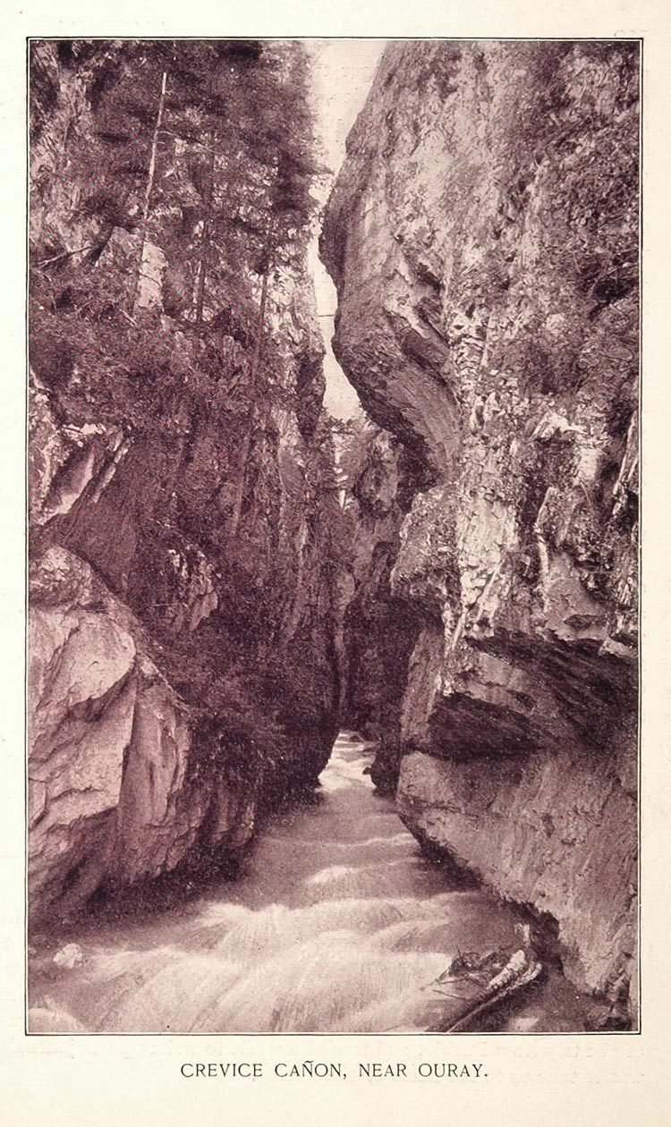This is an original 1893 duotone print of Crevice Canyon, near Ourlay, Colorado.