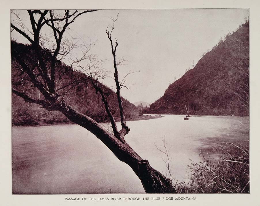 This is an original 1893 duotone print of the James River in the Blue Ridge Mountains.