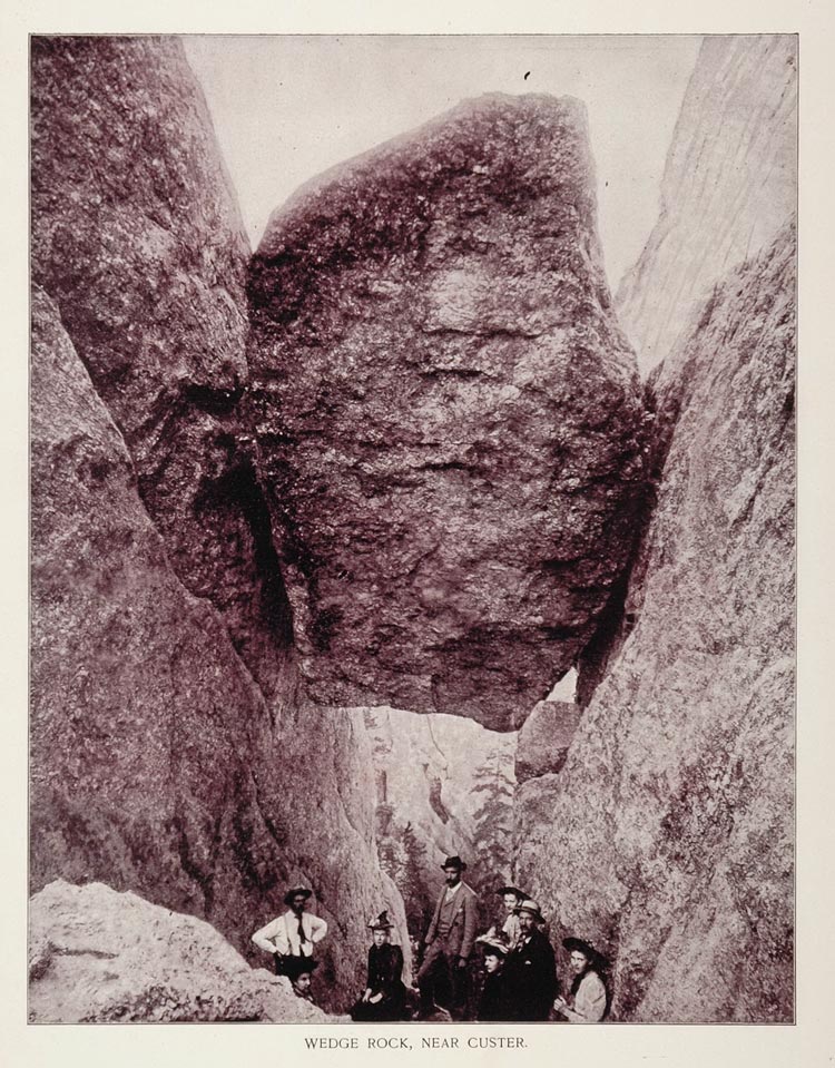 This is an original 1893 duotone print of a group of men under this unusual rock formation in South Dakota.