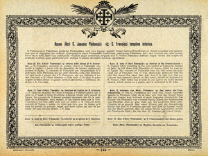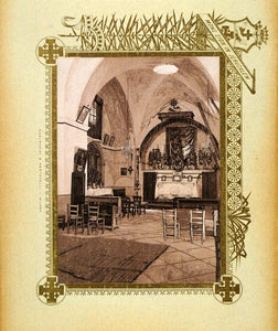 This is an original 1893 etching (individually hand-painted) of the interior of the Church of St. Francis in Acre (or Akko), a city in the Western Galilee area of Israel.