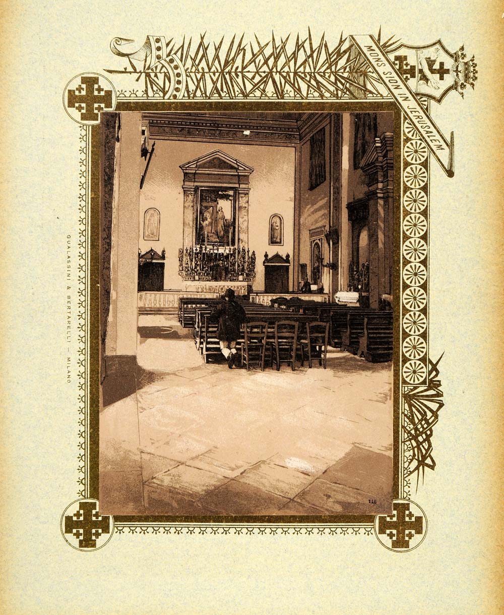 1893 Etching Cairo S. Joseph Church Interior - ORIGINAL PS4