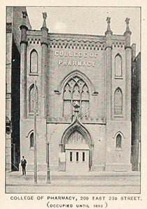 This is an original 1893 halftone print of the College of Pharmacy, 209 East 23rd Street, New York City.