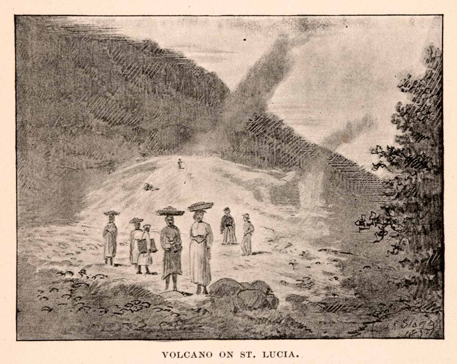 1893 Halftone Print Saint Lucia Volcano Windward Islands Caribbean Sea XGDA9