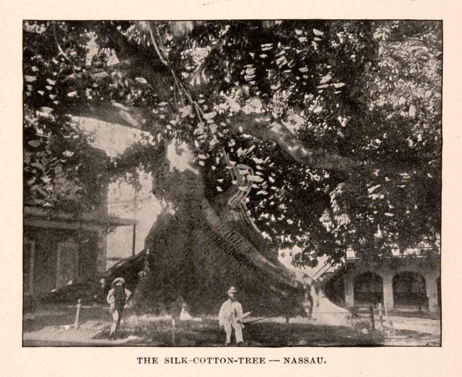 1893 Halftone Print Silk Cotton Tree Town Square Nassau Bahamas Caribbean XGDA9
