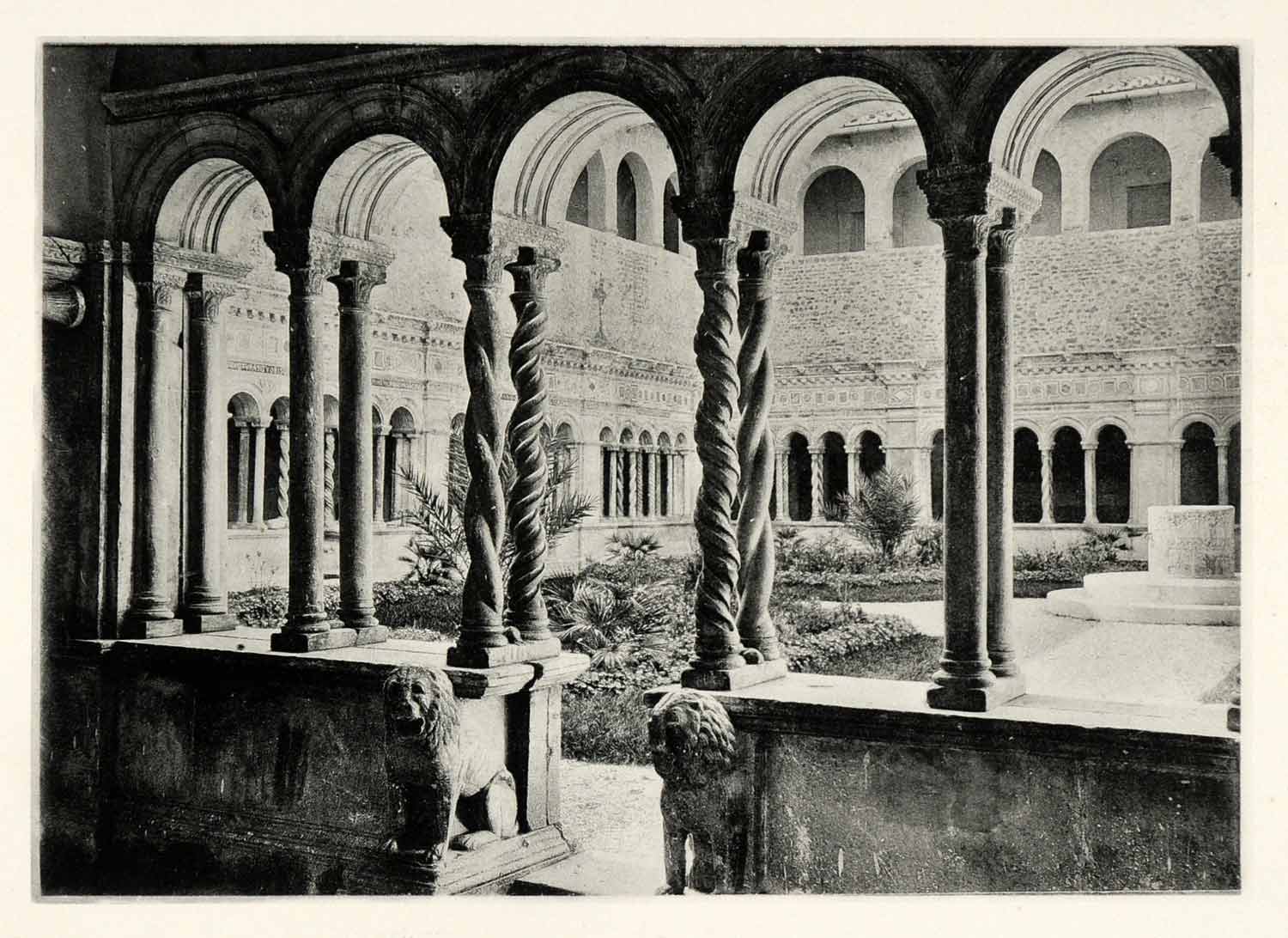 This is an original 1893 black and white heliogravure of the cloister at the Basilica of St. John Lateran.