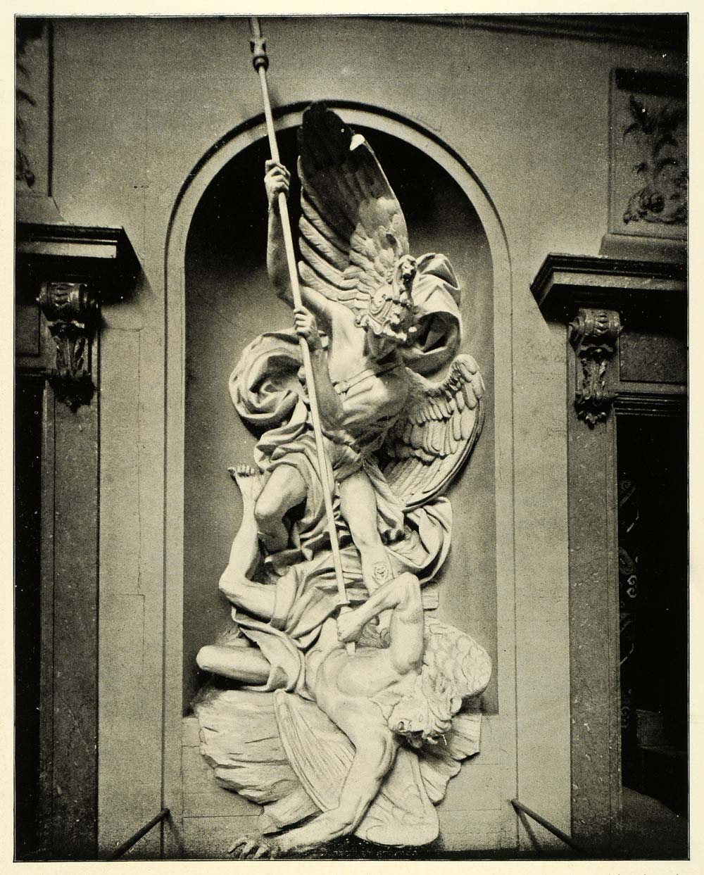 This is an original 1894 halftone print of the beautiful bronze relief sculpture of the Archangel Victor. This was from the German exhibit in the Liberal Arts Department and shows the victory of Archangel Michael over the Prince of Darkness. (Please note that, typical of halftone prints, there is printing on the reverse.)
