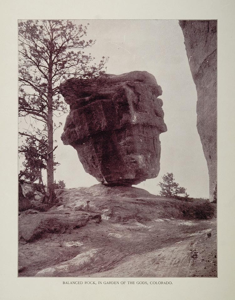 This is an original 1893 duotone print of Balanced Rock--the famous formation in the Garden of the Gods, Colorado.