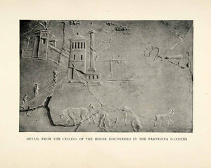 This is an original 1893 halftone print of detail from the ceiling of the house discovered in the Farnesina Gardens in Rome, Italy.