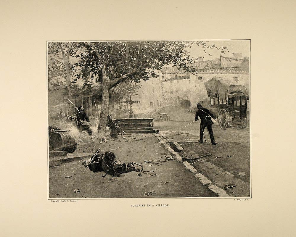 1893 Print Battle French Village Street Bugler Boutigny ORIGINAL HISTORIC FAI1