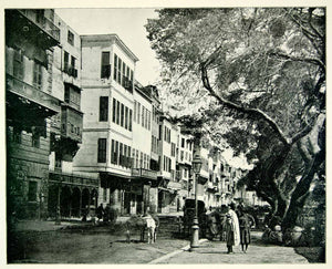 Keywords specific to this image: Metropolis, Pedestrian, Sidewalk, Thoroughfare, Donkey, Mule, Street Lamp, Tree, Foliage, Carriage, Public Square, District, Quarter, Neighborhood