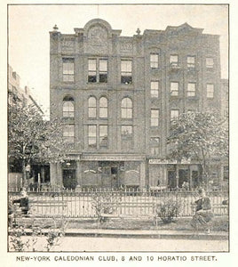 This is an original 1893 halftone print of the New York Caledonian Club, 8 and 10 Horatio Street.