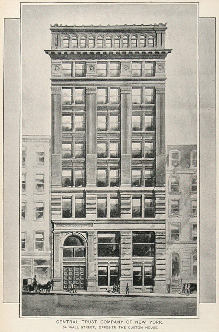 This is an original 1893 print of the Central Trust Company of New York Building, 54 Wall Street, New York City.