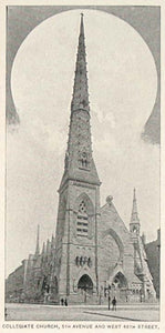 This is an original 1893 halftone print of the Collegiate Church, Fifth Avenue and West 48th Street, New York City.