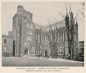 This is an original 1893 halftone print of Columbia College: Library and Open Quadrangle, Madison Avenue and 49th Street, New York City.