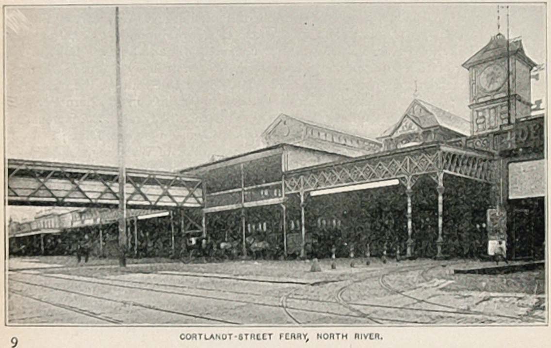 1893 Print Cortlandt Street Ferry Hudson River NYC - ORIGINAL HISTORIC IMAGE NY2