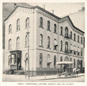 This is an original 1893 halftone print of the Demilt Dispensary, Second Avenue and 23rd Street, New York City.