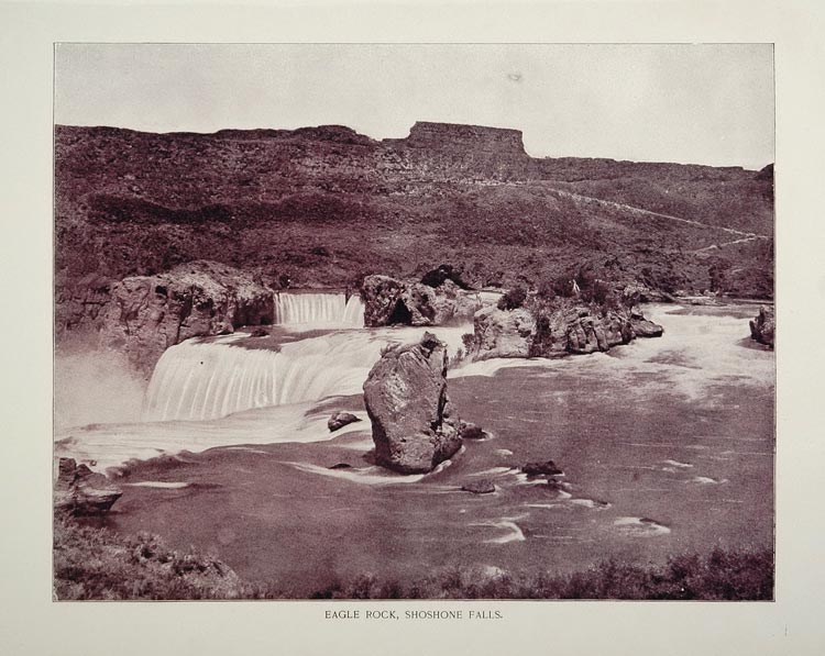 This is an original 1893 duotone print of Eagle Rock, Shoshone Falls on the Snake River in Idaho.